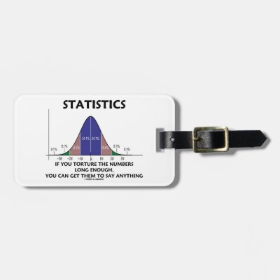 No need to be a statistician to enjoy this statistical humor luggage tag featuring the bell curve (also known as the normal distribution curve or Gaussian curve). Comes with the wry statistical truism saying about the discipline of statistics: "Statistics - If You Torture The Number Long Enough You Can Get Them To Say Anything". Make others do a double-take about the subject of statistics with a dose of educational humor today the next time you travel with this luggage tag! myPsychology