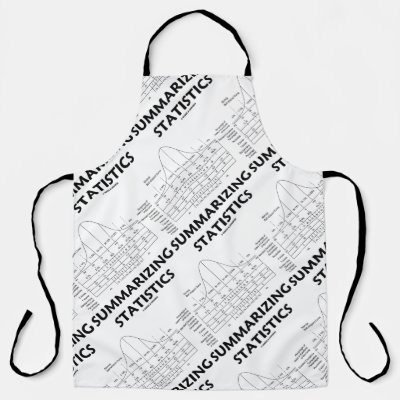 Can you summarize statistics? No need to be a statistician to enjoy this all-over print apron featuring the normal distribution curve (bell curve) complete with percentages under the curve and Z-scores along with the caption that says it all: "Summarizing Statistics". myStatistician