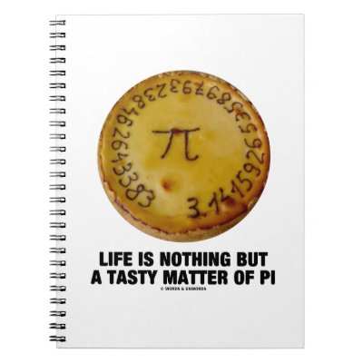 Are you constantly hungry for pi? Hungry pi fans and mathematicians will enjoy wry pi on a pie humor with this notebook featuring the following saying: "Life Is Nothing But A Tasty Matter Of Pi". No need to wait until March 14th rolls around to enjoy this scrumptious pi fan notebook! myMathematician