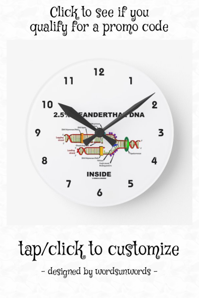 Showcase your wry evolutionary side with this molecular biology attitude clock featuring DNA replication along with the saying that will make others do a double-take on who our ancestors truly are: "2.5% Neanderthal DNA Inside". myEvolution