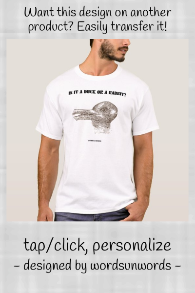 Do you think that this picture is a duck or a rabbit? Make others do a double-take with any of these optical illusion gifts that asks "Is It A Duck Or A Rabbit?" Featuring infamous gestalt phenomenon picture of an entity that is both duck and rabbit. Optical illusion visual fun for all who imagine! myOpticalIllusion