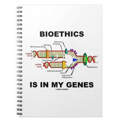 Showcase your wry ethical molecular biology side with this notebook featuring DNA replication along with the saying "Bioethics Is In My Genes". Memorable notebook for any bioethicist! myMolecularBiology