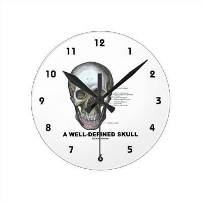Showcase your wry and raw anatomical attitude when you tell time with this clock featuring an illustration of the different parts of the human skull along with the following self-evident caption: "A Well-Defined Skull". myAnatomical