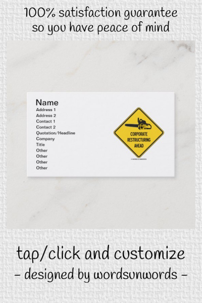 Ad: Corporate Restructuring Ahead (Warning Sign) Business Card