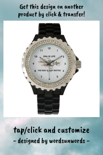 Showcase your wry molecular biology sense of humor the next time you tell time with this watch featuring all key parts of DNA replication along with the following biological saying: "DNA Is Life The Rest Is Just Matter". myMolecularBiology