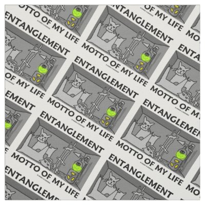 Showcase your wry quantum mechanics / quantum physics attitude toward life with a dose of geek humor the next time you create with this fabric featuring quantum entanglement via the Copenhagen interpretation of quantum mechanics -- i.e. Schrödinger's cat in both states dead and/or alive. Comes with the saying that will make others do a double-take on how you feel about life with a dose of scientific fun: "Entanglement Motto Of My Life". Memorable fabric for anyone who can't decided which state of matter one is in! myPhysics