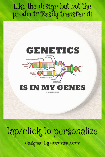No need to be a biologist or geneticist to enjoy wry scientific humor with this coaster featuring DNA replication complete with all key parts and labels along with the biological truism saying "Genetics Is In My Genes". Make everyone do a double-take on the world of genetics and genes with this educational scientific attitude coaster today! myMolecularBiology