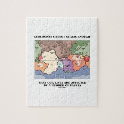 Showcase your wry geological and earth scientific side with this plate tectonics attitude jigsaw puzzle featuring a map of the world's tectonic plates along with the following scientific truism saying: "Geologists Cannot Stress Enough That Our Lives Are Affected By A Number Of Faults". myEarthScience