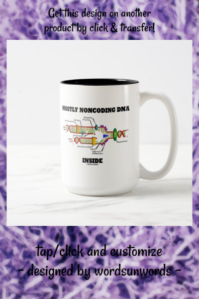 Showcase your wry DNA replication attitude with a dose of educational scientific measure with this mug featuring DNA replication along with the following biological truism saying: "Mostly Noncoding DNA Inside". Make others do a double-take on what the human genome truly consists of with biology humor today! myMolecularBiology