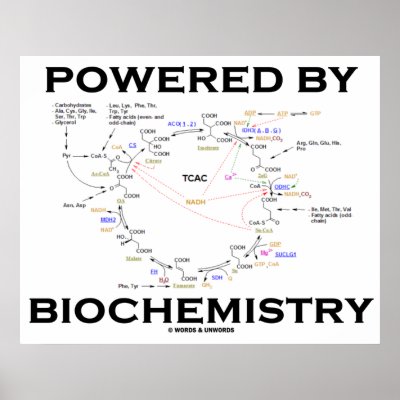 Face it - you are powered by biochemistry. Showcase your scientific knowledge of the Krebs cycle -- also known as the citric acid cycle or tricarboxylic acid cycle (TCAC) -- with this educational poster featuring the saying "Powered By Biochemistry". Memorable poster gift for any biologist biochemist or chemist who knows that everyone is powered by biochemistry! myBiochemistry