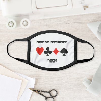 Do you lay awake at night thinking about the bridge hands that you have played earlier in the day? Showcase your wry bridge attitude with this polyester face mask featuring the four card suits along with the saying "Bridge Insomniac Inside"! Memorable polyester face mask for any avid bridge player. myBridgePlayer