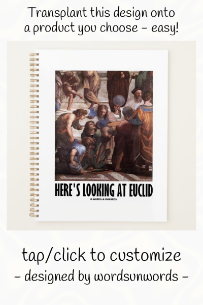 Showcase your wry mathematical and artistic side with this planner featuring a drawing of Euclid in Ancient Greek times by Raphael in his infamous fresco work "The School Of Athens" along with the saying "Here's Looking At Euclid". Planner for any fan of Euclid and his contributions to geometry throughout the ages! myMathematician