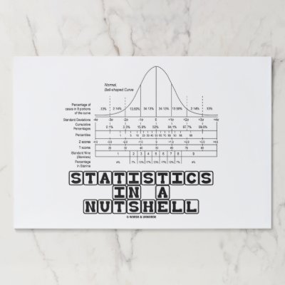 Showcase your statistical side with wry stats humor with this paper pad that includes the normal distribution curve cheat sheet along with the caption "Statistics In A Nutshell". Excellent conversational paper pad cheat sheet for budding and experienced statisticians -- or anyone who wants to let others know all about statistics! myStatistician