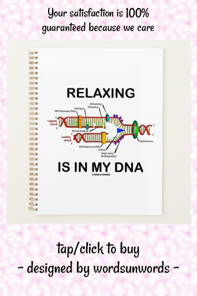 If you love to relax showcase your wry molecular biology attitude with this planner featuring DNA replication along with the saying "Relaxing Is In My DNA". Memorable geek humor scientific saying planner for anyone who likes to relax all the time! myMolecularBiology