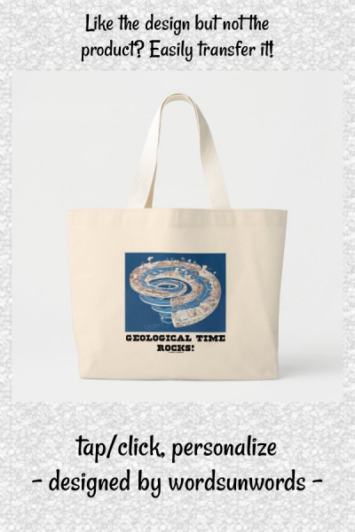 No need to be a geologist or earth scientist to enjoy any of these gifts featuring Earth's history in geological time in a spiral along with the saying "Geological Time Rocks!" Includes labels of the main eons epochs and periods. Make others do a double-take of geological time with any of these geek humor gifts! No need to be a rock hound to enjoy! myEarthScience