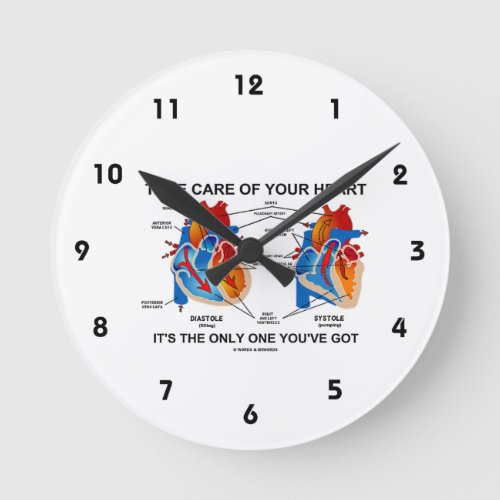 Take Care Of Your Heart It's Only One You've Got Round Clock #heart #health, #heart, #diastole, #systole, #RoundClock