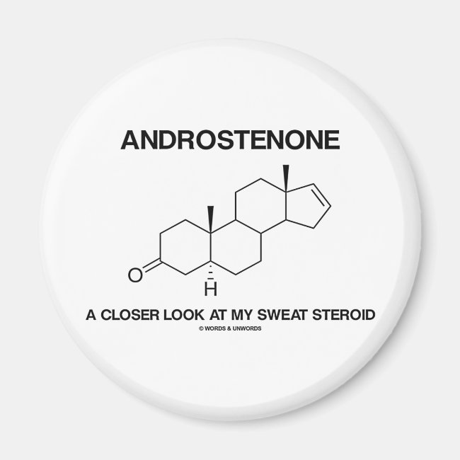 Showcase wry biochemical and chemistry humor with this chemical molecule of androstenone with the caption "A Closer Look At My Sweat Steroid". Make others do a double-take the next time you sweat with any of these tongue-in-cheek educational science attitude gifts! myBiochemistry