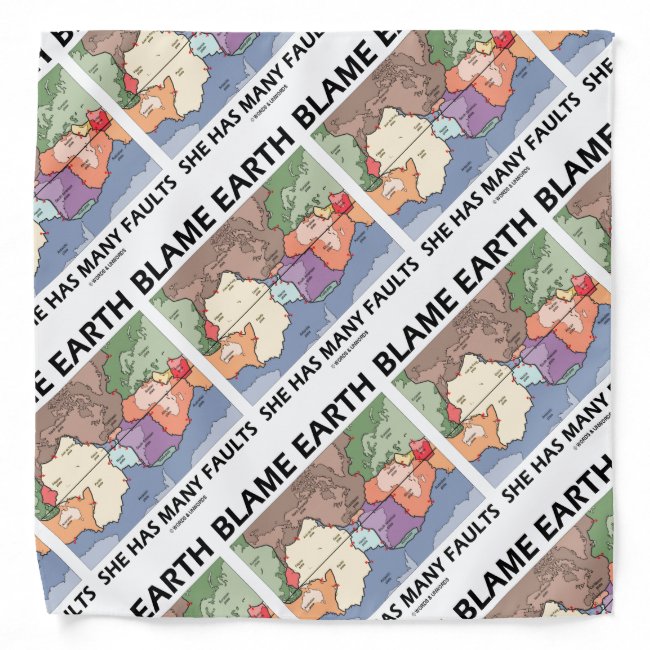 No need to be have experienced an earthquake to understand that the Earth has many fault lines. Showcase wry plate tectonics humor with this bandana featuring the different plates of the Earth along with the scientific truism double-entendre saying "Blame Earth She Has Many Faults". Comes with a world map featuring the different plates of the Earth. Educational scientific saying bandana for seismologists geologists earth scientists and anyone who understands that Earth has many faults! myGeology