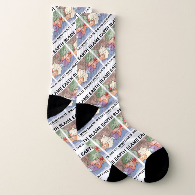 No need to be have experienced an earthquake to understand that the Earth has many fault lines. Showcase wry plate tectonics humor with this pair of socks featuring the different plates of the Earth along with the scientific truism double-entendre saying "Blame Earth She Has Many Faults". Comes with a world map featuring the different plates of the Earth. Educational scientific saying socks for seismologists geologists earth scientists and anyone who understands that Earth has many faults! myGeology