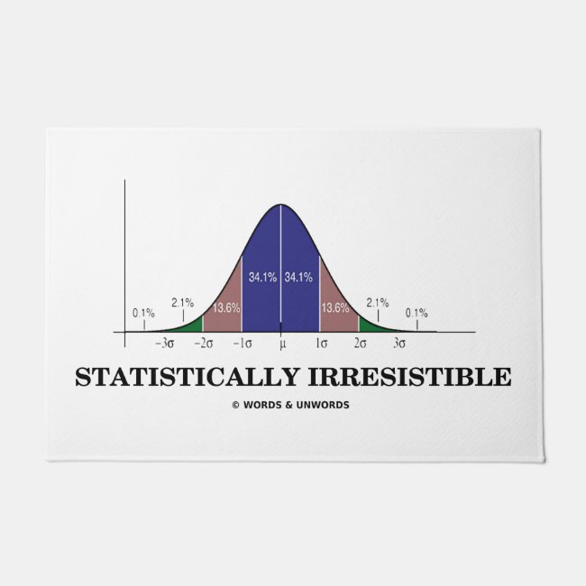Showcase your bell curve humor with a dose of fun with this door mat featuring a bell curve (normal distribution curve) complete with percentages under the curve along with the stats humor caption "Statistically Irresistible". Make others do a double-take with a dose of statistical attitude with this doormat! myStatistics