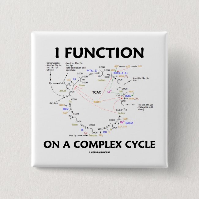 Ad: I Function On A Complex Cycle (Krebs Cycle Humor) Button