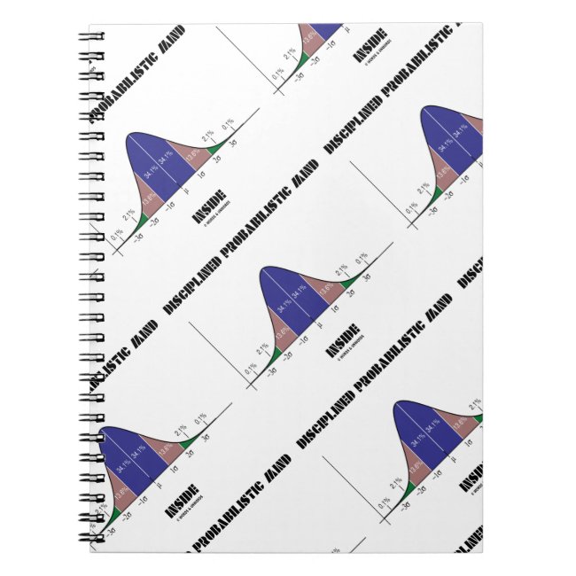 Make others do a double-take with a dose of wry probabilistic attitude with this notebook featuring the bell curve (normal distribution curve) along with the following saying: "Disciplined Probabilistic Mind Inside". Tongue-in-cheek statistical attitude notebook for anyone with a disciplined probabilistic mind. myStatistics