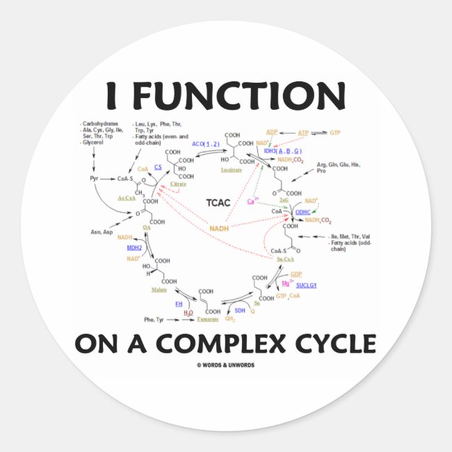 Ad: I Function On A Complex Cycle (Krebs Cycle Humor) Classic Round Sticker