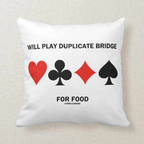 Will Play Duplicate Bridge For Food 4 Card Suits Throw Pillow