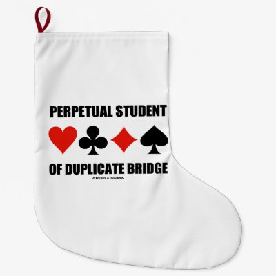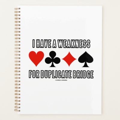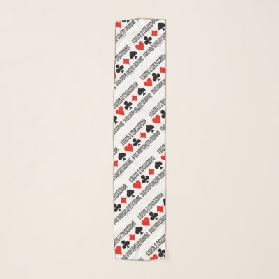 Showcase your wry bridge / duplicate bridge attitude with this scarf featuring the four card suits along with the saying "I Have A Weakness For Duplicate Bridge". Make others do a double-take with a dose of duplicate bridge humor today with this scarf. No need to be an avid duplicate bridge player or bridge teacher to enjoy! myBridgeTeacher