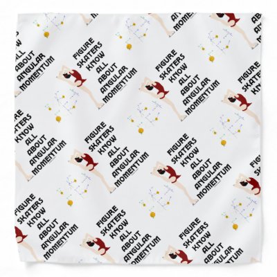 If you love figure skating and think about the physics of figure skating you'll enjoy wry scientific figure skating attitude with this bandana! Bandana features an illustration of angular momentum in physics along with a female figure skater doing the Biellmann spin plus the saying "Figure Skaters Know All About Angular Momentum". Memorable bandana for anyone who loves skating and understands the science behind spinning! myPhysics