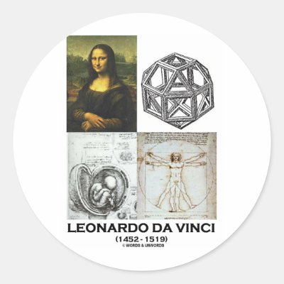 If you are a fan of Renaissance poliymath and genius Leonardo da Vinci you'll enjoy this Leonardo da Vinci collage featuring 4 of his works: Mona Lisa rhombidodecahedron Vitruvian Man and study of a foetus in the womb. Showcase the mutli-talented epitome of the Italian Renaissance Leonardo da Vinci with this sticker! myDaVinci