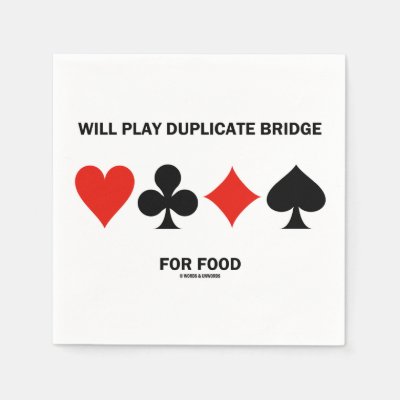 Will Play Duplicate Bridge For Food Card Suits Paper Napkins