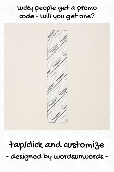 Showcase wry educational stats humor with this scarf featuring the normal distribution curve (also known as the bell curve or Gaussian curve) along with the saying "Think Probabilities Not Possibilities - Do Statistics". No need to be a statistician or statistics major to enjoy. Psychological stats attitude scarf for any realist who understands how important it is to think in terms of probabilities and not possibilities! myPsychology