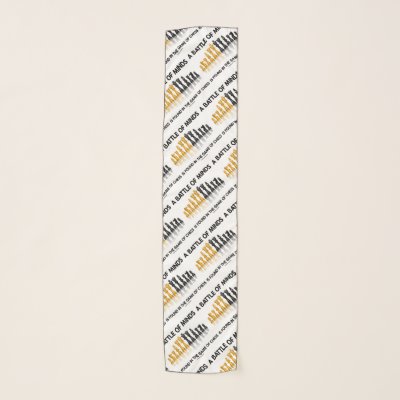 Any chess player who loves to do battle with the game of chess will enjoy this scarf featuring a reflective chess set along with the saying "A Battle Of Minds Is Found In The Game Of Chess". Memorable chess saying scarf for any avid chess player or chess teacher! myChess