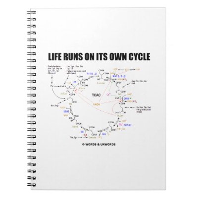 No matter what you do or how busy you are you'll enjoy wry scientific educational biochemistry humor with this notebook featuring the Krebs cycle (also known as the citric acid cycle or tricarboxylic acid cycle). Tongue-in-cheek truism saying about life included: "Life Runs On Its Own Cycle". Make others do a double-take today about life with this science humor notebook! myBiochemistry