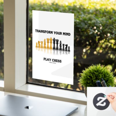 Make others do a double-take on what they should do with a dose of chess attitude with this window cling featuring a reflective chess set along with the following chess advice: "Transform Your Mind Play Chess". Inspirational chess saying window cling for any avid chess player chess teacher or chess student! myChess