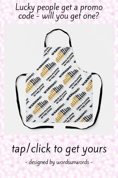 Showcase your wry chess player side with this all-over print apron featuring a reflective chess set along with the saying "Warning! Chess Player In The Zone". Memorable chess geek humor all-over print apron for any chess player or chess teacher who likes to go into the zone when playing chess! myWarning