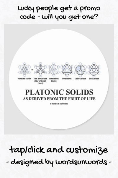 No need to be a mathematician or a spiritual person to enjoy any of these gifts featuring the various "Platonic Solids As Derived From The Fruit Of Life". Included are the 5 Platonic solids known as tetrahedron hexahedron octahedron dodecahedron and icosahedron along with Metatron's Cube in comparison. In geometry a Platonic solid is a convex polyhedron that is regular in the sense of a regular polygon. Specifically the faces of a Platonic solid are congruent regular polygons with the same number of faces meeting at each vertex; thus all its edges are congruent as are its vertices and angles. Throughout the ages sacred geometry has been used in the planning and construction of religious structures and religious art. Make others do a double-take regarding all of the five platonic solids with any of these memorable "Platonic Solids As Derived From The Fruit Of Life" gifts! myMathematician