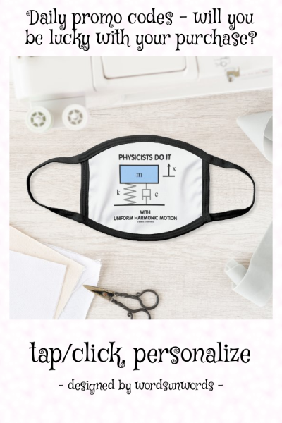 Are you a physicist? Showcase your wry scientific side with this cotton/polyester face mask featuring a mass spring damper diagram along with the tongue-in-cheek saying: "Physicists Do It With Uniform Harmonic Motion". Make others do a double-take at exactly what physicists do with educational scientific humor today! myPhysics