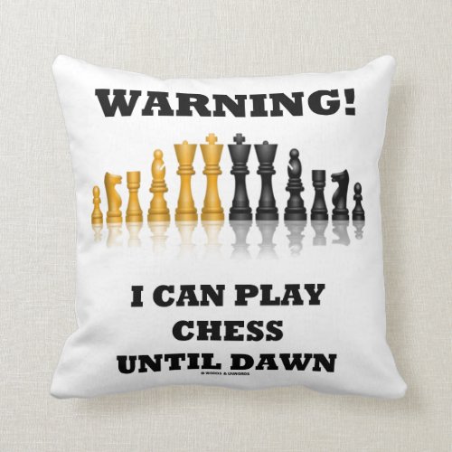 Warning! I Can Play Chess Until Dawn Chess Humor Throw Pillow #warning #reflective #chess #set #i #ThrowPillow