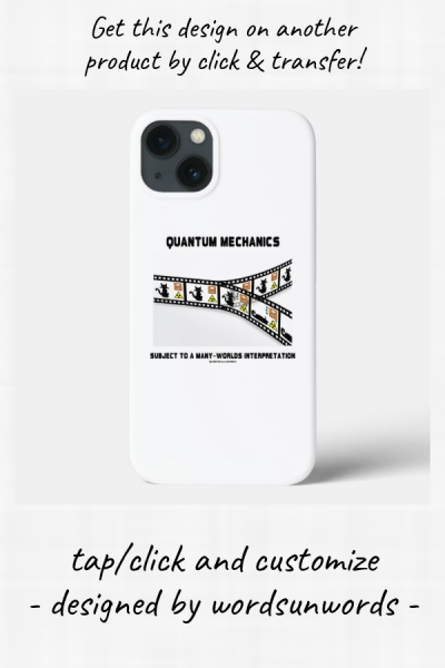 Showcase your wry physics attitude with this iPhone 13 case featuring the paradox of Schrödinger's cat as illustrated by a film reel that separates into different universes that do not interact with each other along with the following saying that any quantum physicist can agree with: "Quantum Mechanics Subject To A Many Worlds Interpretation". Philosophical entanglement attitude iPhone 13 case for anyone who wonders whether Schrödinger's cat is dead or alive! myPhysics
