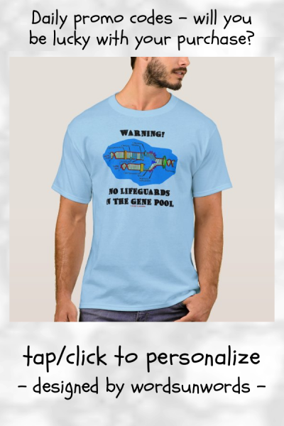 No need to be a biologist or geneticist to enjoy wry science humor with any of these molecular biology attitude gifts featuring DNA replication complete with all key labels. Comes with the often-heard saying "Warning! No Lifeguards In The Gene Pool". Make others do a double-take about exactly what you mean with a dose of scientific attitude today! myWarning