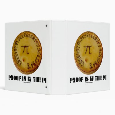 Wry pi fan humor is alive and well on this binder featuring pi the mathematical constant and irrational number on a baked pie along with the following saying that will make others scratch their heads and wonder what you are referring to: "Proof Is In The Pi". myMathematician