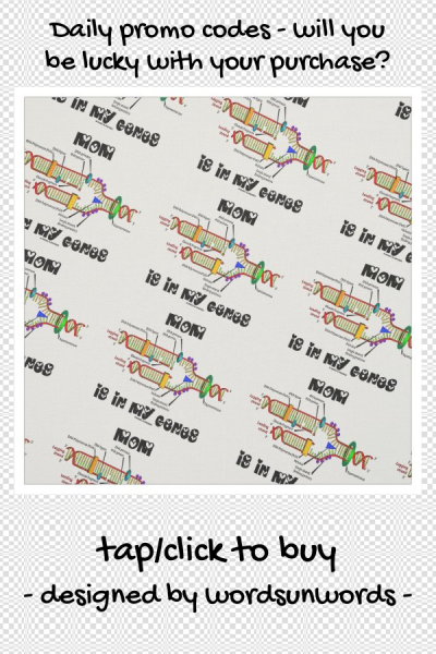Are you a mother or daughter who likes to create with fabric? Enjoy this DNA replication fabric featuring DNA replication along with the saying "Mom Is In My Genes"! Memorable scientific saying fabric for any mother who passes on her genes to her children. No need to wait until Mother's Day rolls around each year to enjoy this molecular biology scientific reminder fabric for the next time you create! myMolecularBiology