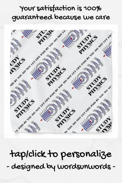 Showcase your wry twisted physics attitude with this bandana featuring the Doppler Effect along with the double-entendre saying that will make others do a double-take on the subject of physics: "Do Not Let Life Pass By You Study Physics". Note: There is no error in the saying "Do Not Let Life Pass By You" as opposed to the common saying of "do not let life pass you by". You'll need to seize the moment with a dose of physics humor with this bandana which promotes the study of physics! No need to be a physics major or physics teacher to enjoy. myPhysics