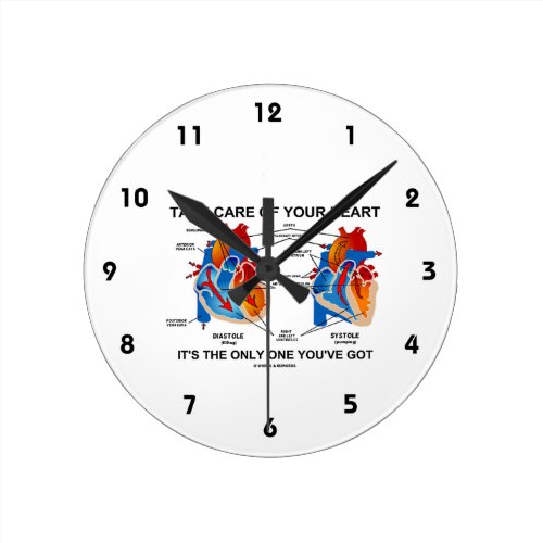 Take Care Of Your Heart It's Only One You've Got Round Clock #heart #health #heart #diastole #systole #RoundClock