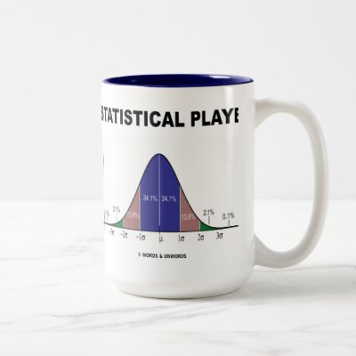 Showcase your wry statistical attitude with any of these statistical gifts featuring the bell curve (normal distribution curve Gaussian curve) along with the saying "Statistical Player". Make others do a double-take on the subject of statistics and statistical thinking with any of these educational scientific gifts! myStatistician