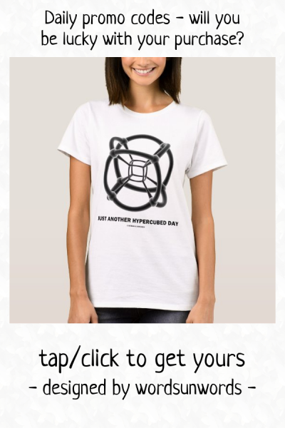 Do you think in terms of hypercubes -- i.e. in four dimensional terms? Showcase your wry mathematical and geometric sense humor with any of these gifts with a hypercube along with the saying "Just Another Hypercubed Day". Memorable math and geometry attitude gifts for all who think in the fourth dimension! myMathematician