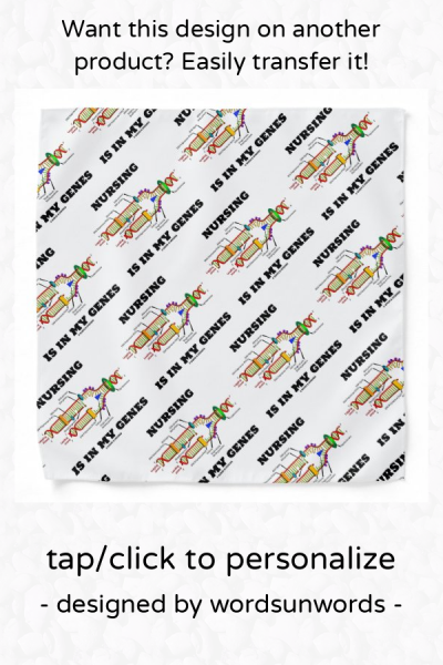 Make others do a double-take with a dose of wry medical and biological attitude with this bandana featuring DNA replication along with the saying "Nursing Is In My Genes". Memorable science humor bandana for any nurse who is genetically wired to take care of others! myMolecularBiology