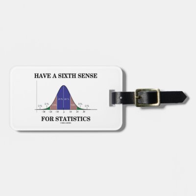Statisticians will enjoy any of these stats attitude luggage tag featuring the bell curve distribution (normal distribution curve Gaussian curve) along with the following alliterative statistical saying: "Have A Sixth Sense For Statistics". Memorable luggage tag for anyone who finds the subject of statistics to be an intuitive one! myStatistician